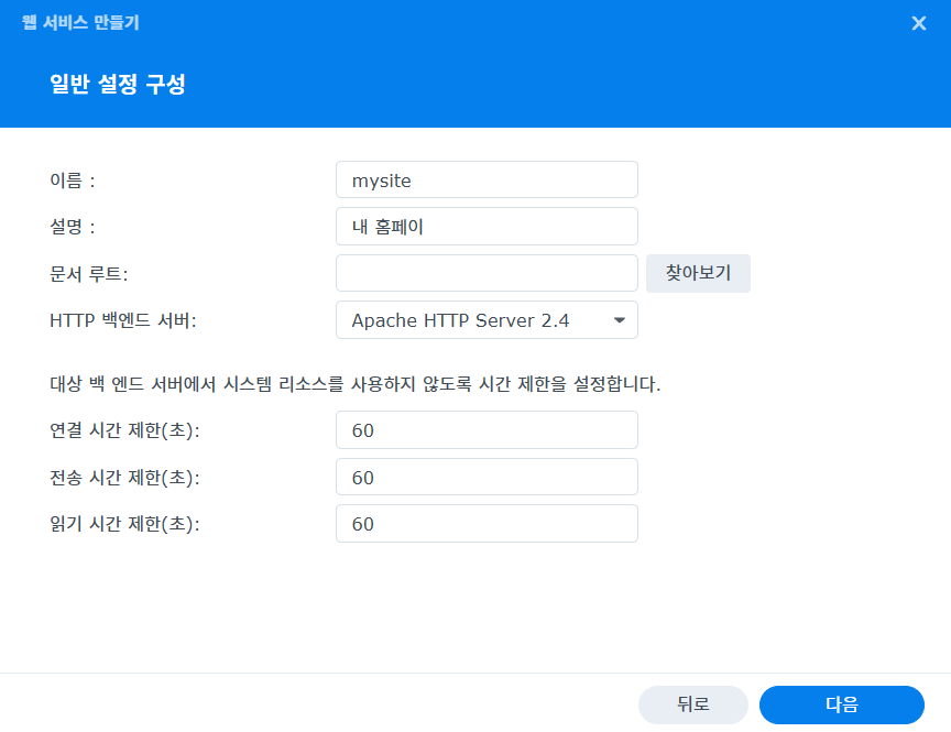 HTTP 백엔드 서버는 저는 Apache HTTP Server 2.4를 지정해 주었습니다.