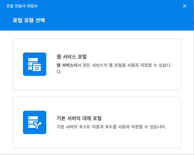 그러면 포털 유형 선택 창이 나옵니다. 웹 서비스 포털을 클릭합니다.